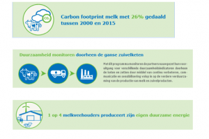 Samen met de landbouwpartners (Boerenbond, ABS en FWA) werkte de Belgische zuivelindustrie in 2014 een sectorbreed duurzaamheidsprogramma uit, dat zowel de productie (melkveehouderij), ophaling (transport) als de verwerking (zuivelfabrieken) aftoetst.